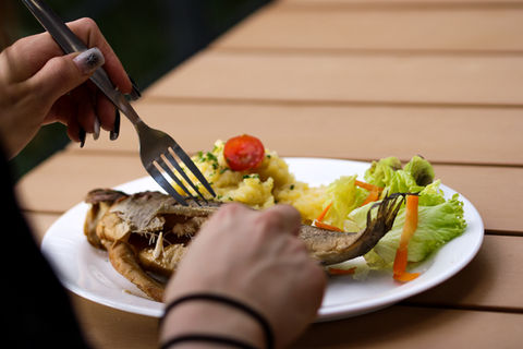 Backfisch mit Pommes oder Kartoffelsalat